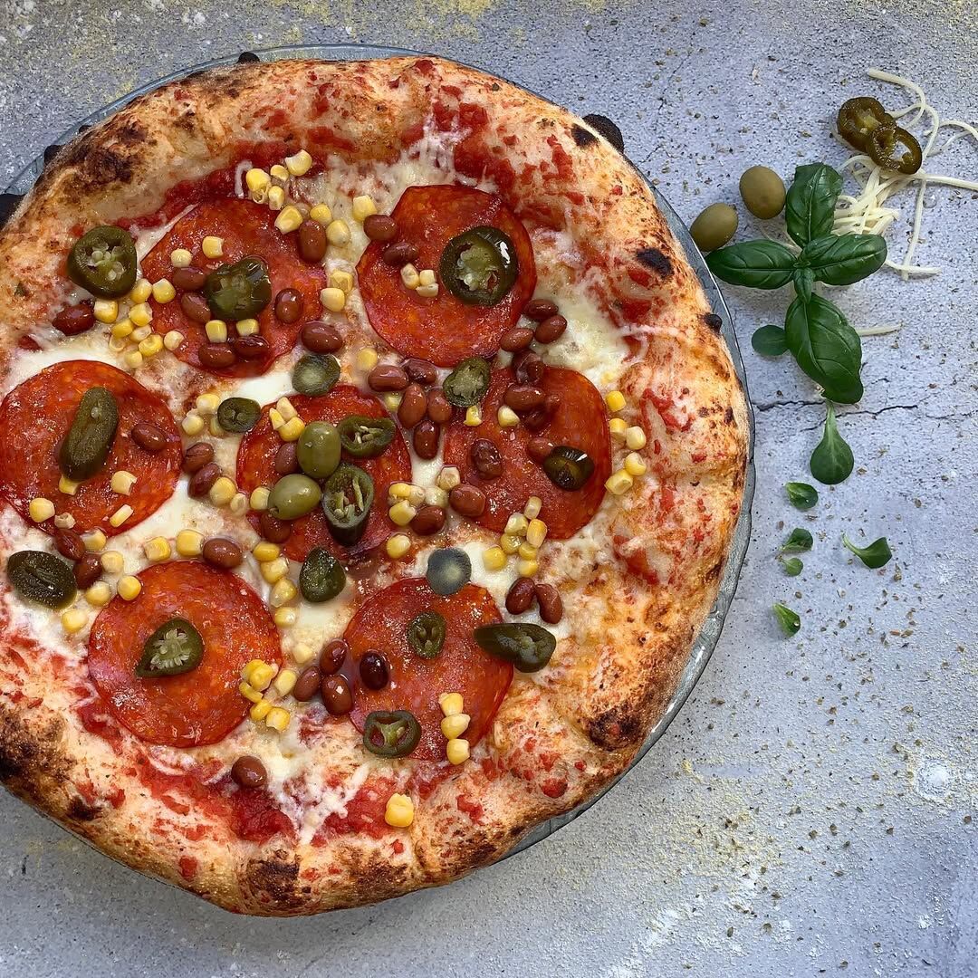 Sastojci: polpa, Violife veganski sir, primavita veganska mozzarella, stellina kobasica, dimljeni tofu, feferoni (blagi / ljuti), masline i origano